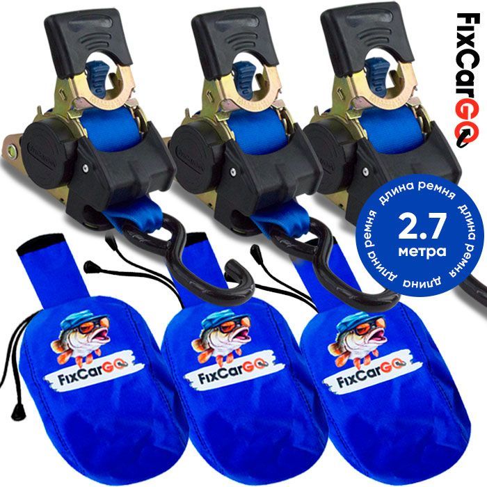 • Стяжки для крепления груза автоматические 50 мм. 2,7 м. с чехлами (3 шт.)